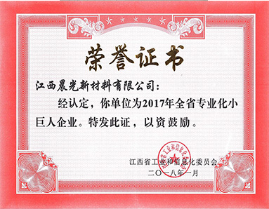 江西省工業(yè)和信息化委員會(huì)授予“2017年江西省專精特新中小企業(yè)”榮譽(yù)
